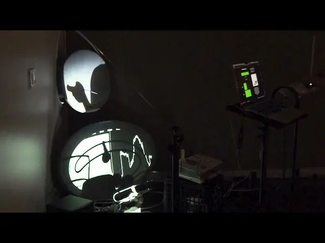 For the Parsons Design and Technology Thesis Show, I set up an audiovisual installation using two defunct satellite dishes, two projectors, a theremin as a midi controller, a dipole antenna connected to CubicSDR for live shortwave radio and Max MSP for audio modulation. The video below shows the setup.